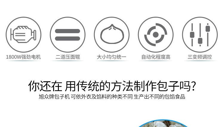 作者:杭州旭眾發(fā)布時間:2017-04-15 11:42查看數(shù):您當(dāng)前的位置:首頁>>產(chǎn)品展示>>面制品加工系列>>包子機(jī)系列