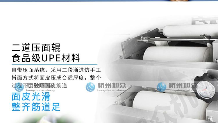 ◆壓面滾筒采用性能更好的食品級材料UPE加工而成,且增大了滾筒直徑使得在壓面過程中面皮的精度更高,產(chǎn)品重量精度更高;