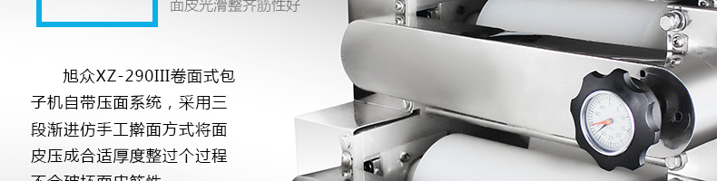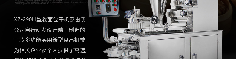 旭眾牌XZ-290III型卷面式包子機(jī)是由本公司自主設(shè)計(jì)研發(fā),精工打造的一款專業(yè)仿手工生產(chǎn)制作各種包餡類食品的高效實(shí)用型機(jī)械設(shè)備,是一款生產(chǎn)肉包、菜包、小籠包、豆沙包、奶黃包等多種包餡類產(chǎn)品的多功能實(shí)用新型食品機(jī)。