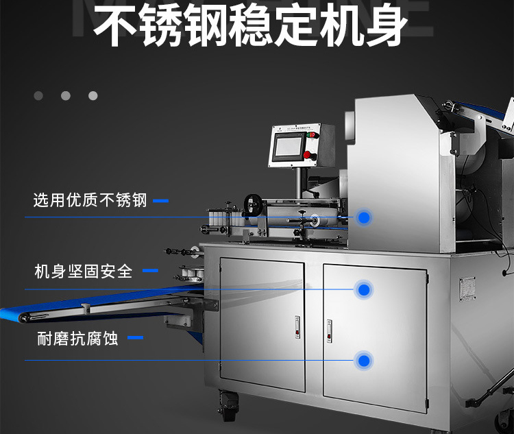 ◆壓面、成型、出餡、切刀一體化,操作方便,生產效率高,占地面積小。