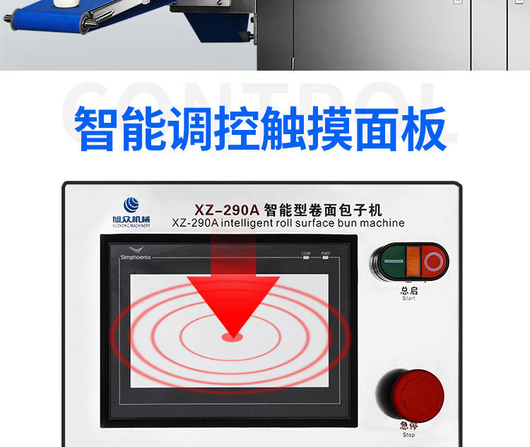 XZ-290A智能型卷面式包子機,XZ-290A智能型卷面式包子機是一款以壓面方式成型面皮,卷面方式包餡,仿手工捏花的一款機型,它整合了原有的二道壓面、成型機、出餡機、切刀為一體,有操作方便、占地面積小等優(yōu)點。