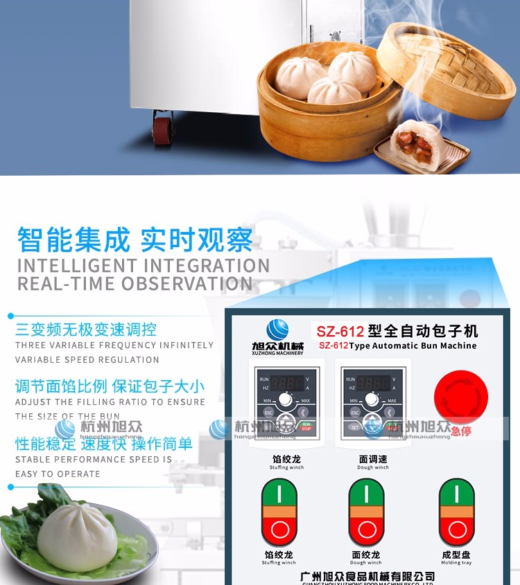 SZ-612型全自動(dòng)包子機(jī)是一款設(shè)計(jì)先進(jìn),結(jié)構(gòu)簡(jiǎn)單,操作方便,生產(chǎn)性能穩(wěn)定的設(shè)備。其體積小重量輕,外殼主要部件采用不銹鋼制作,外觀精美。