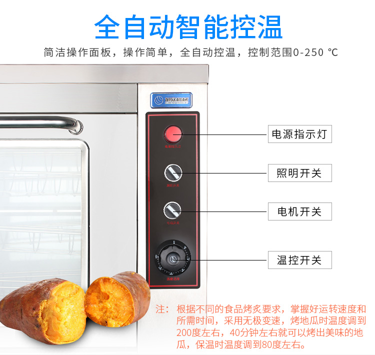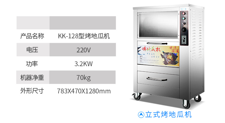 名稱KK-68型烤地瓜機(jī) 電源220V 功率2.0kw 產(chǎn)量 尺寸620×500×680mm 重量41kg 規(guī)格 其他