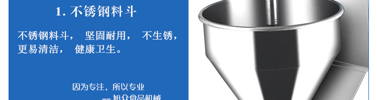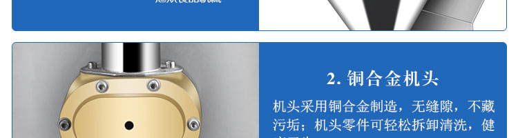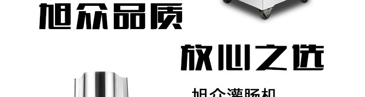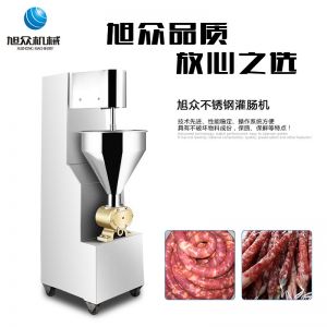 旭眾牌SZ-200灌腸機(jī)使用敞開式不銹鋼料斗,適用于連續(xù)添加物料;與灌裝手接觸部件全部采用優(yōu)質(zhì)不銹鋼制作以防生銹;該機(jī)自動化程度高,技術(shù)先進(jìn)、性能穩(wěn)定、操作簡便、工作效率高,具有不破壞物料成份,保質(zhì)、保鮮等特點(diǎn)。