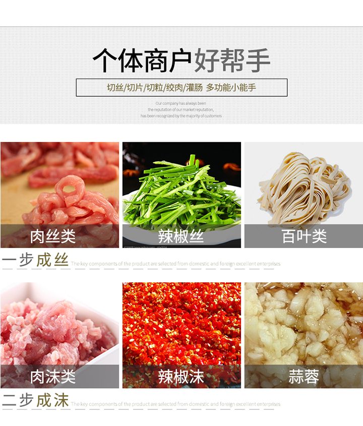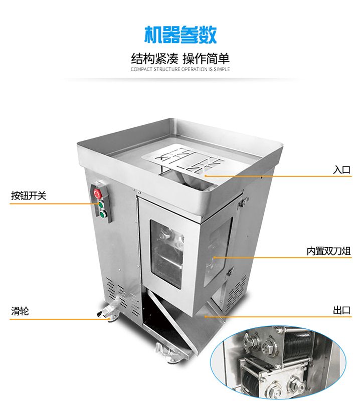 旭眾XZL一次成型切絲機是我廠精心研制出的新產(chǎn)品,該機時尚、簡潔、清洗便捷、操作安全,配有風冷馬達,適合連續(xù)作業(yè);高質(zhì)量全不銹鋼機身。適應于酒樓、超市、工廠、學校、賓館、食堂等各種肉類加工企業(yè)和個體用戶使用。?