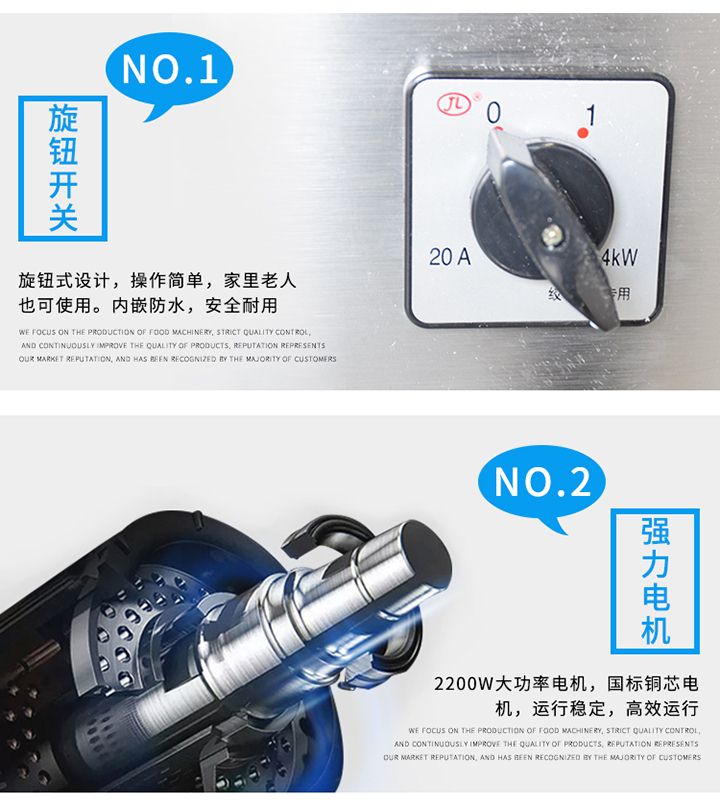 XZL-22A絞肉機(jī)吸取同行之優(yōu)點(diǎn),改進(jìn)新型絞肉切肉機(jī)械,它能切豬肉、羊肉、牛肉、魚及其它各種肉類、所切肉片厚度適中切片效率高,是餐廳、賓館、酒樓、單位食堂等絞肉切肉的理想機(jī)械,該機(jī)外形獨(dú)特,操作方便,維修簡單,工作效率高,在同行業(yè)中處領(lǐng)先地位,與食物接觸部分均采用不銹鋼制造符合食品衛(wèi)生標(biāo)準(zhǔn)。