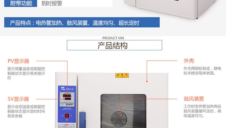 鼓風(fēng)智能數(shù)顯型電熱恒溫干燥箱,廣泛用于工農(nóng)業(yè)生產(chǎn)、科學(xué)研究、醫(yī)療衛(wèi)生等單位對(duì)各種糧食、中藥材、動(dòng)植物、化工材料以及各種工業(yè)產(chǎn)品的烘干烘熟、熱處理和加溫,但不適用于揮發(fā)性、易燃易爆等物品,以免引起燃燒和爆炸。