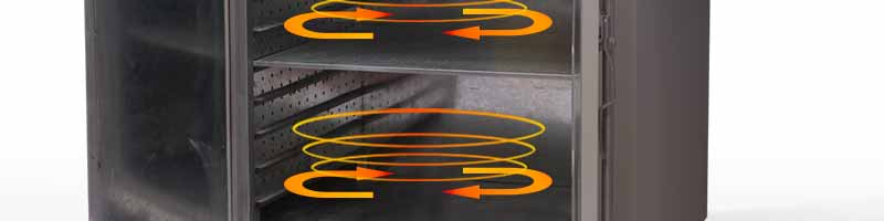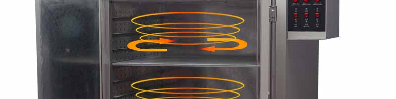 本運風箱分水平對流式和上下對流式兩種。工作室較小的采用水平對流式,發(fā)熱部分在上部,工作室較大的則采用上下對流式,發(fā)熱部分在上部。電機安裝在上部或后部,通過帶動風輪將熱量流通到工作室,如此循環(huán)。
