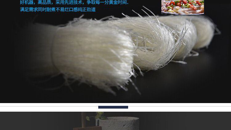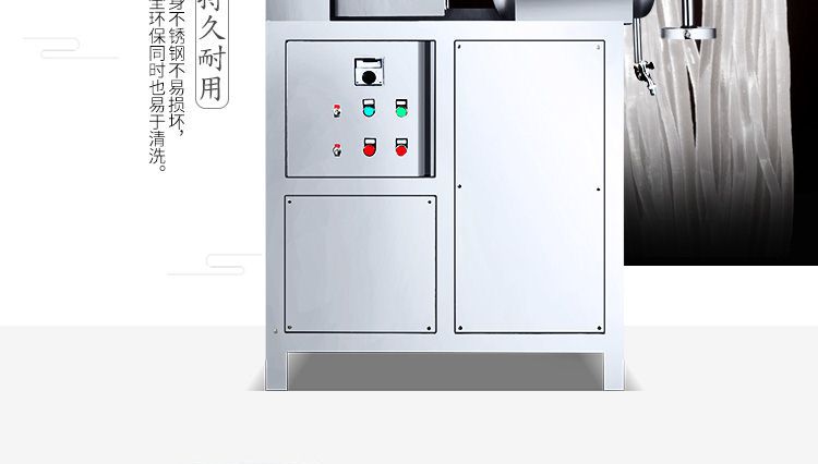 改進(jìn)型米粉、米線專用機(jī),裝有自動(dòng)溫空裝置,整個(gè)生產(chǎn)過程設(shè)備均在恒溫狀態(tài)下運(yùn)行,自動(dòng)化程度高,操作簡(jiǎn)單,l人即可生產(chǎn)??缮a(chǎn)米粉、米線、桂林米粉、過橋米線、年糕等產(chǎn)品。各種形狀都可生產(chǎn)(圓、扁),加工食品外表光滑,厚薄、寬窄、粗細(xì)均勻可調(diào),筋軟適度,有彈性,口感柔軟、味道純正。