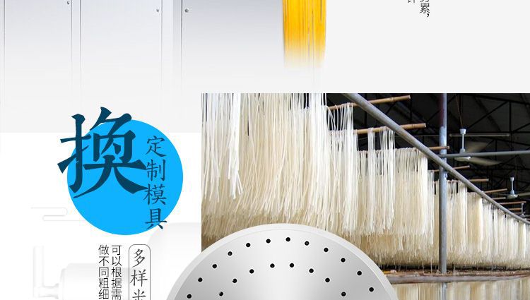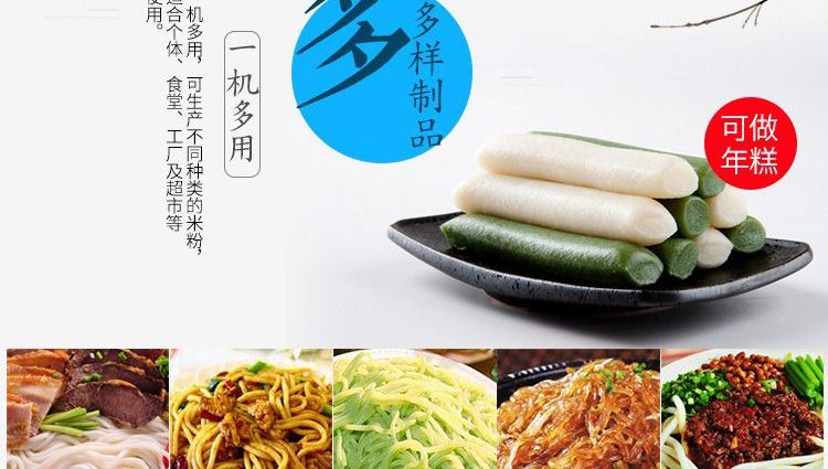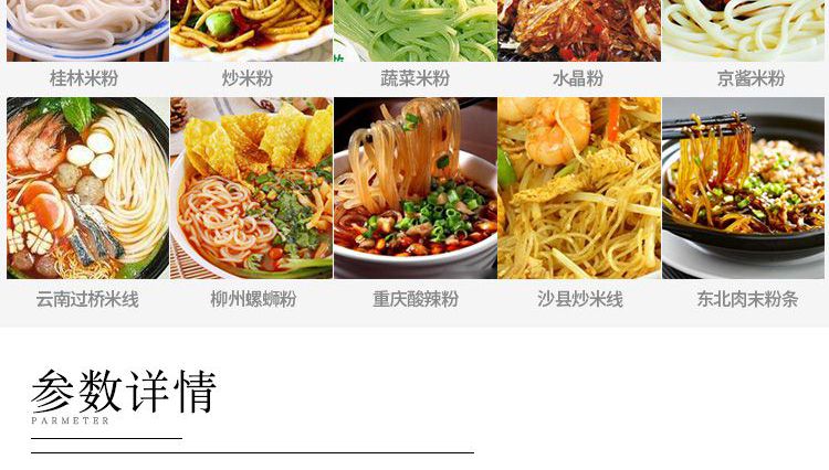 ◆ 米粉機(jī)生產(chǎn)多樣性可生產(chǎn)米粉、米線、粉絲、粉條、年糕、玉米面條、各種雜糧粉絲、各種面條、雜糧面條、彩色面條以及以紅薯、玉米、大豆、蠶豆等制成淀粉為原料的等多種食品而且每種食品厚薄、粗細(xì)等規(guī)格可根據(jù)需要任意調(diào)整。