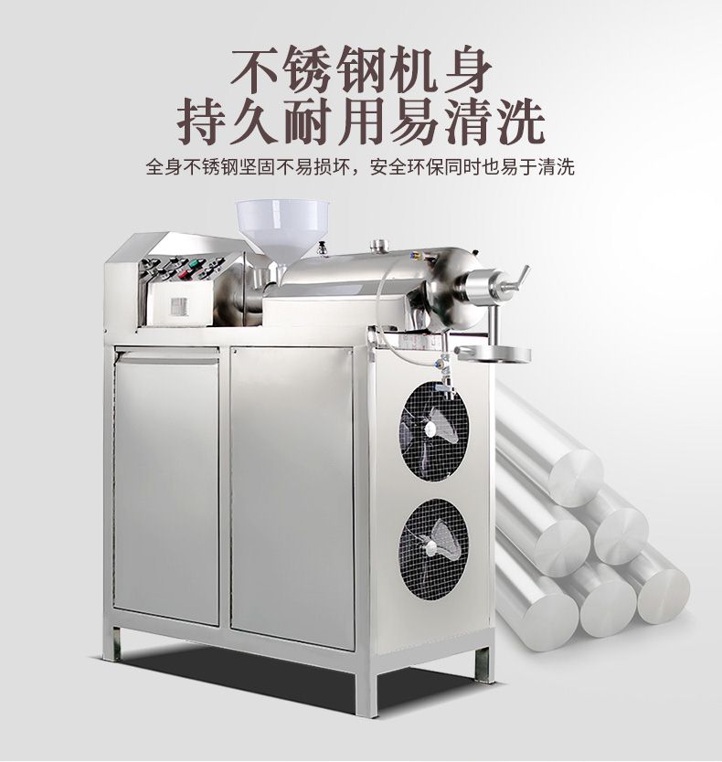 改進(jìn)型米粉、米線專用機(jī),裝有自動(dòng)溫空裝置,整個(gè)生產(chǎn)過(guò)程設(shè)備均在恒溫狀態(tài)下運(yùn)行,自動(dòng)化程度高,操作簡(jiǎn)單,l人即可生產(chǎn)??缮a(chǎn)米粉、米線、桂林米粉、過(guò)橋米線、年糕等產(chǎn)品。各種形狀都可生產(chǎn)(圓、扁),加工食品外表光滑,厚薄、寬窄、粗細(xì)均勻可調(diào),筋軟適度,有彈性,口感柔軟、味道純正。