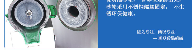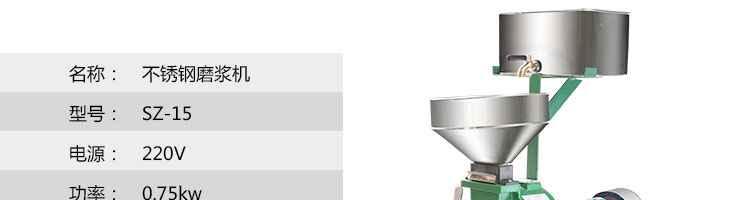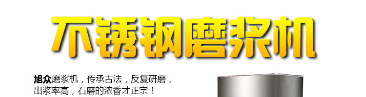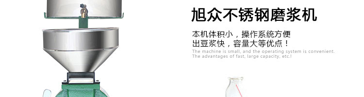 旭眾牌SZ-12/15/20不銹鋼磨漿機結(jié)構(gòu)合理,造型美觀,操作簡便。具有體積小、重量輕、噪音低、省力,性能穩(wěn)定、質(zhì)量可靠、容易清洗、移動方便等優(yōu)點,適用于豆制品廠、飲食服務(wù)業(yè)、食堂、飯店及個體商戶使用。