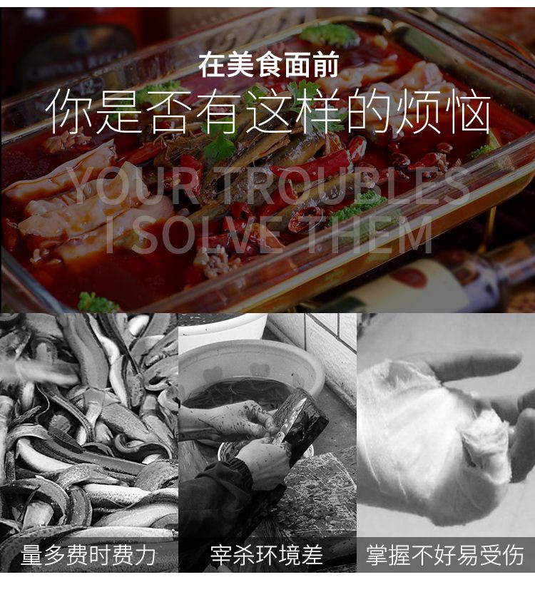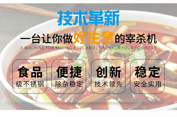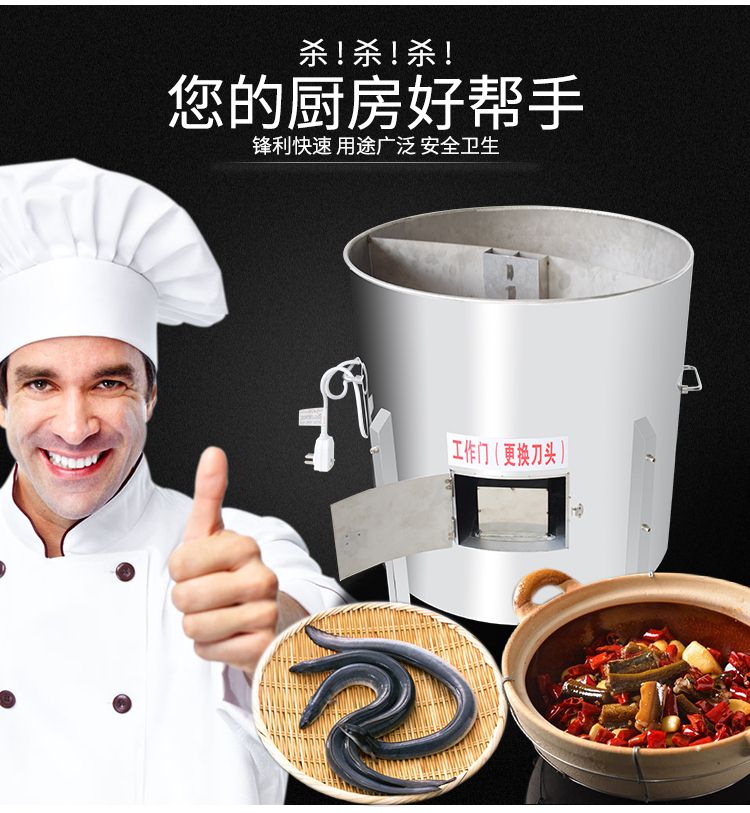 鱔魚泥鰍宰殺機(jī)是我廠根據(jù)市場需求,自行研發(fā)設(shè)計(jì)的,專業(yè)宰殺鱔魚、泥鰍的通用型機(jī)電設(shè)備,具有工作效率高,能耗低,故障率低,經(jīng)久耐用,操作安全方便,外形美觀大方等特點(diǎn)。填補(bǔ)了市面上黃鱔泥鰍宰殺設(shè)備的空白,是一款不錯(cuò)的投資產(chǎn)品,可廣泛應(yīng)用于菜市場、食堂、食品加工廠、酒店等場所。