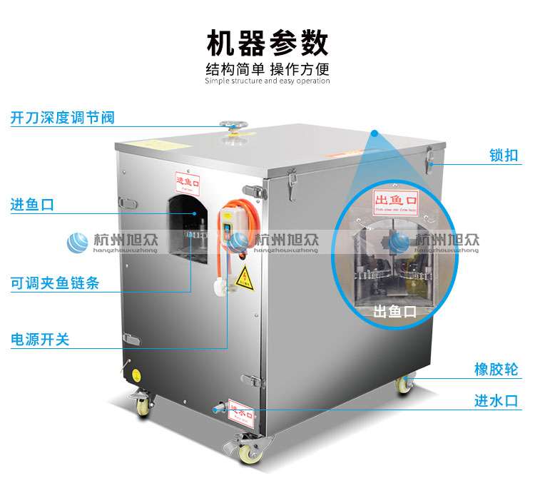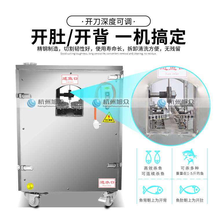 本機(jī)整機(jī)采用優(yōu)質(zhì)不銹鋼制造,耐磨耐用,符合食品衛(wèi)生標(biāo)準(zhǔn)。把魚(yú)放在設(shè)備的入料口,輸送鏈條自動(dòng)把魚(yú)送到切割刀片處將開(kāi)肚/開(kāi)背(魚(yú)肚朝上放為開(kāi)肚,魚(yú)背朝上放為開(kāi)背),適用于水產(chǎn)品加工廠,肉類(lèi)加工廠,魚(yú)類(lèi)罐頭廠,大型餐飲行業(yè)等單位。本產(chǎn)品不會(huì)對(duì)魚(yú)頭、魚(yú)尾、魚(yú)鰭造成損傷。