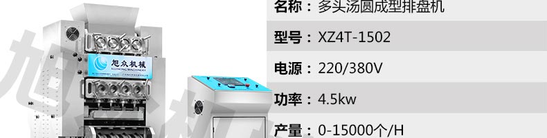 旭眾牌XZ4T-1501型多功能湯圓成型排盤機(jī)是一款只要將面團(tuán)放入進(jìn)料口,開機(jī)便可自動搓圓、成型的設(shè)備,制品不易變形,工作效率高,相當(dāng)于15-20個工人同時手工制作湯圓,并可自動排盤,真正的低投入、高收效、省錢省工。