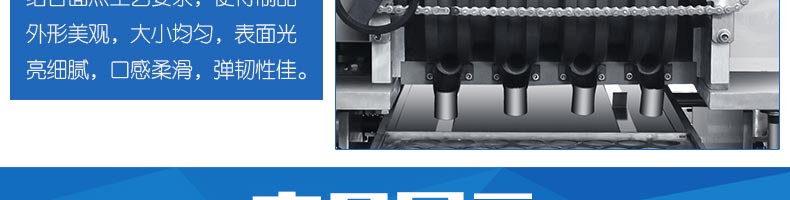 ◆采用圓盤擠壓搓圓技術(shù),結(jié)合面點工藝要求,使得制品外形美觀,大小均勻,表面光亮細(xì)膩、口感柔滑,彈韌性佳;