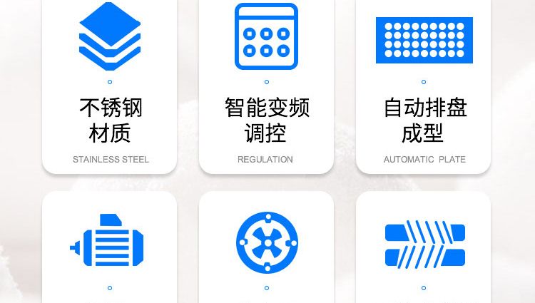 ◆觸摸屏自動控制搓圓擺盤一體成型技術(shù),使得制品外形美觀,大小均勻,表面光亮細(xì)膩、口感柔滑,彈韌性佳;