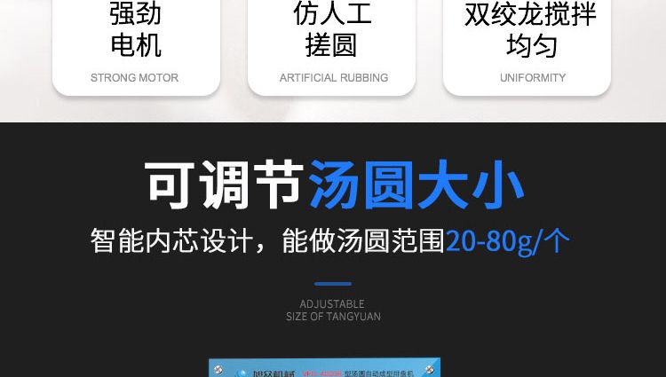 ◆工作效率高,相當(dāng)于20-30個工人同時手工制作湯圓,真正的低投入、高收效,省錢省工。