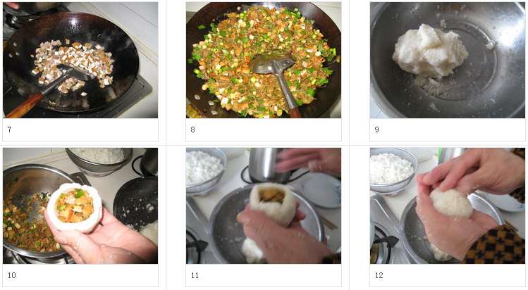 11.慢慢把口捏攏。這個(gè)不比面團(tuán),沒有彈性,故只能不斷的把米團(tuán)往上推,最后合上口。如果感覺比較粘,可以放一邊沾水處理。