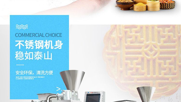 SZ-65型多功能自動(dòng)包餡機(jī)采用臥式輸面、立式輸餡系統(tǒng),運(yùn)行流暢,效率高??缮a(chǎn)豆沙、蓮蓉、五仁餡等較干餡料的包餡類產(chǎn)品,制出的產(chǎn)品餡、皮比例可任意調(diào)整,制品大小統(tǒng)一,外形美觀。