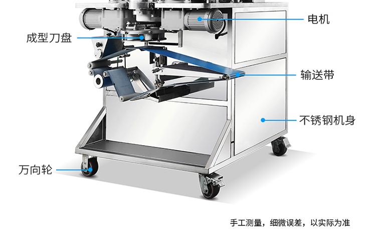 3.三通內(nèi)部采用撥片式轉(zhuǎn)動下料,使面皮更光滑、厚薄均勻、