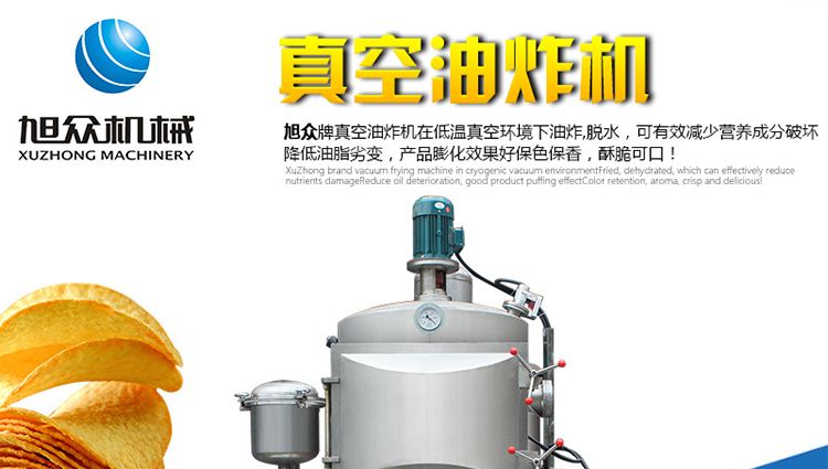 ●真空油炸是在低溫(80~120℃)對(duì)食品進(jìn)行油炸、脫水,可以有效地減少高溫對(duì)食品營(yíng)養(yǎng)成分的破壞。