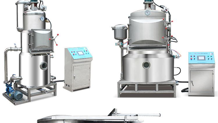●降低油脂劣變程度:炸用油的劣化包括氧化、聚合、熱分解,而以水或水蒸汽與油接觸產(chǎn)生水解為主。在真空油炸過程中,油處于負(fù)壓狀態(tài),溶于油脂中的氣體很快大量逸出,產(chǎn)生的水蒸汽壓力較小,而且油炸溫度低,因此,油脂的劣化程度大大降低。