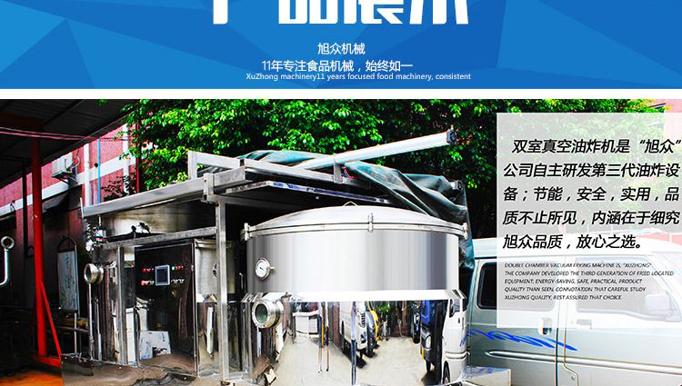 ●真空油炸是在低溫(80~120℃)對(duì)食品進(jìn)行油炸、脫水,可以有效地減少高溫對(duì)食品營(yíng)養(yǎng)成分的破壞。