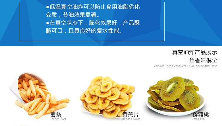 ●因此采用真空油炸技術(shù)可以很好地保存原料本身具有的香味。